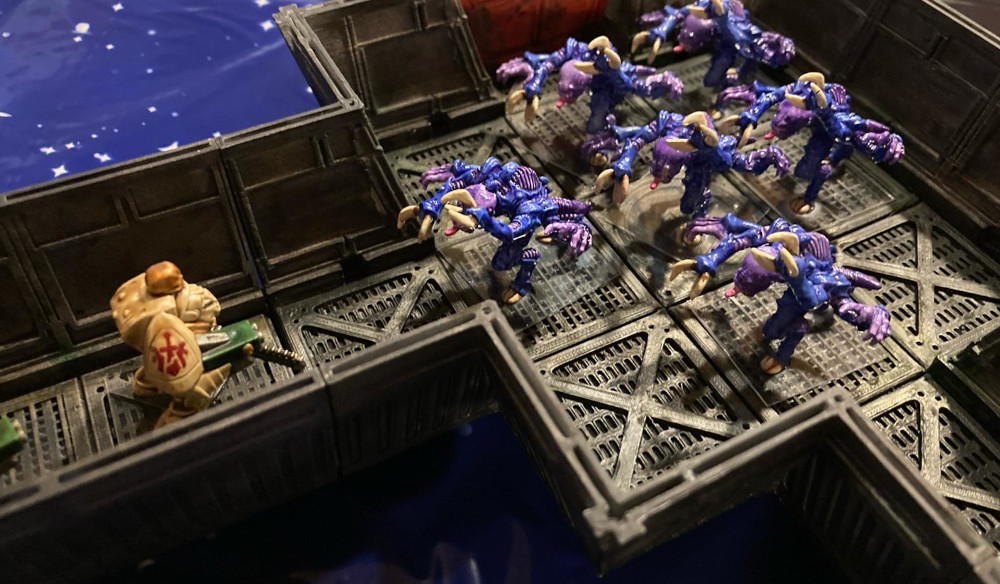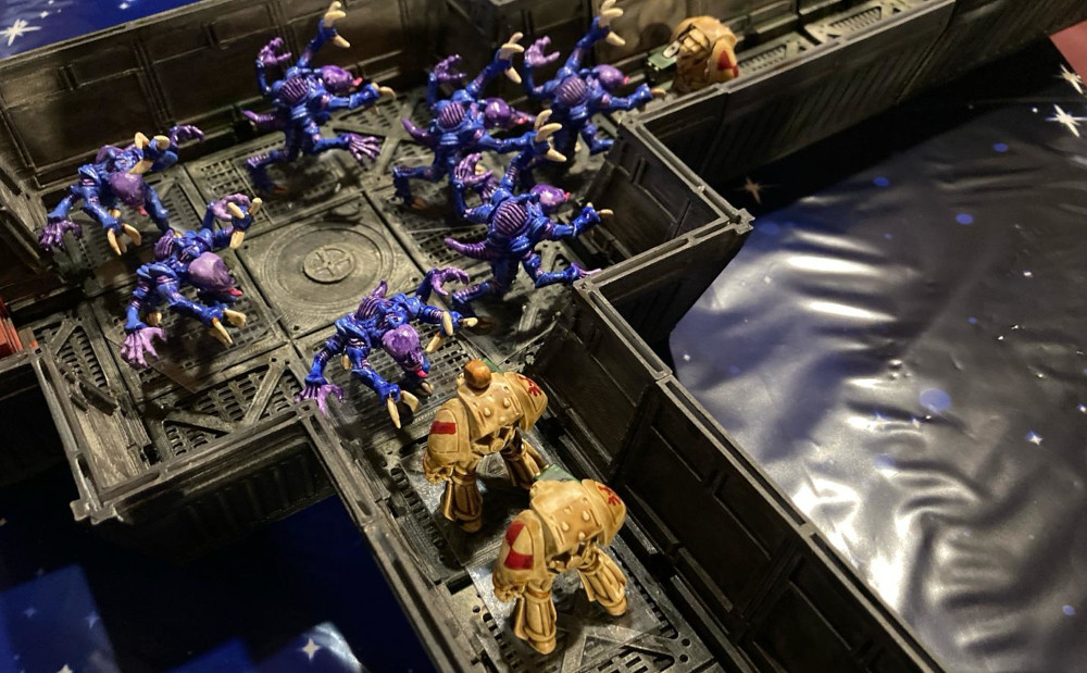 Zum 35. Jubiläum von Space Hulk wird eine Space Hulk Platte mit 3D Gängen präsentiert und bespielt.
