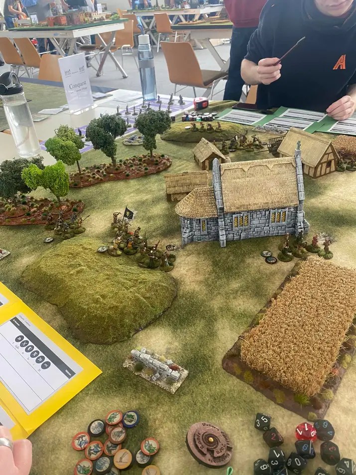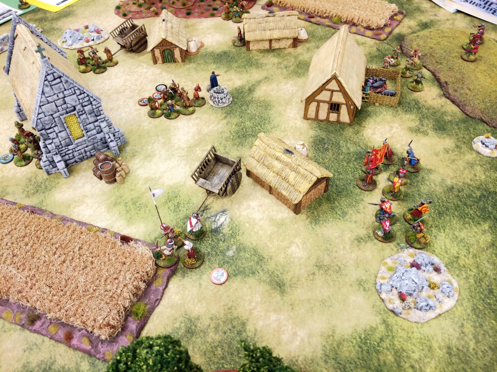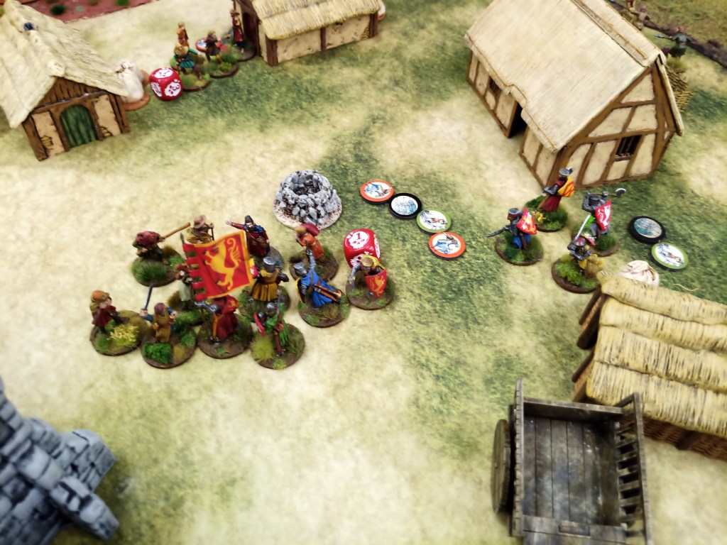 Es handelt sich um ein historisches Scharmützelsystem von Footsore Miniatures mit ca. 30 Figuren pro Spieler in der Zeit des Ersten Barons Kriegs (1215-2017) in England und obwohl das Spiel historisch korrekt ist, lässt es sich einfach und intuitiv spielen.